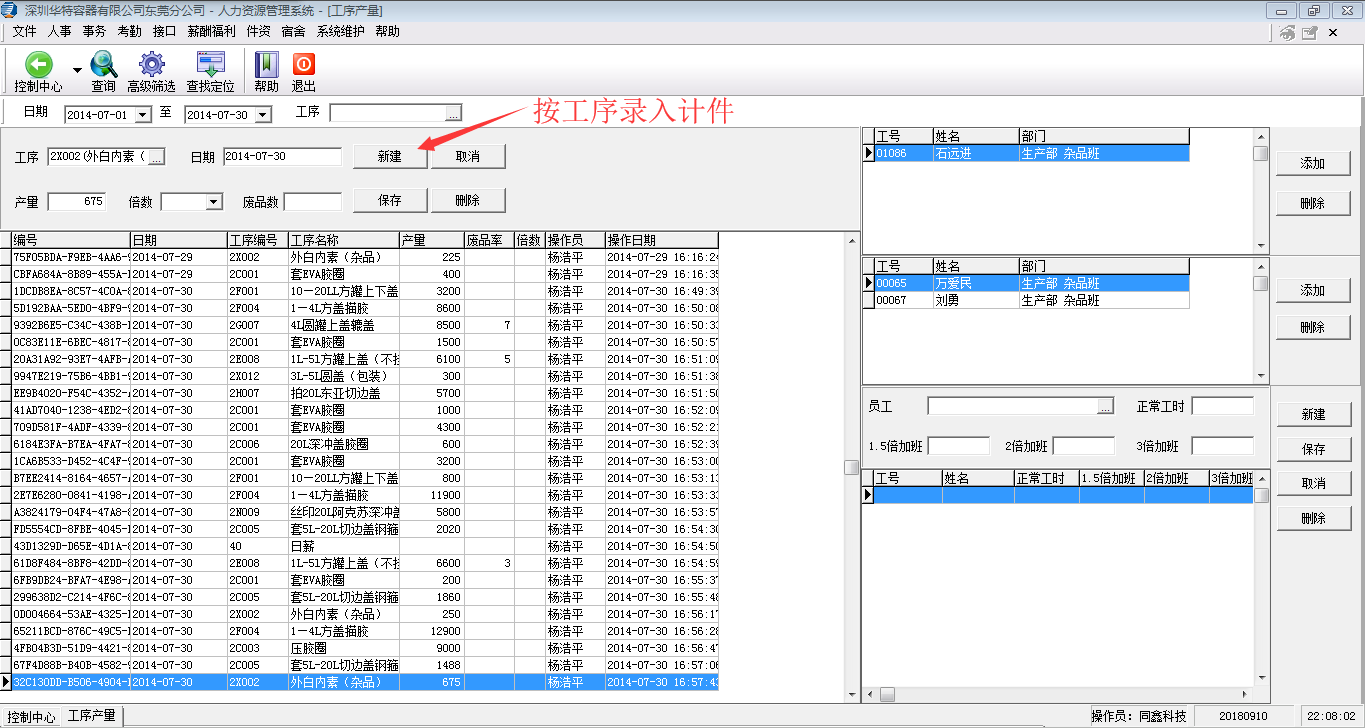 2)實現了設定特殊計時工序,無產量及廢品數,按計時及倍數計算計件工資;